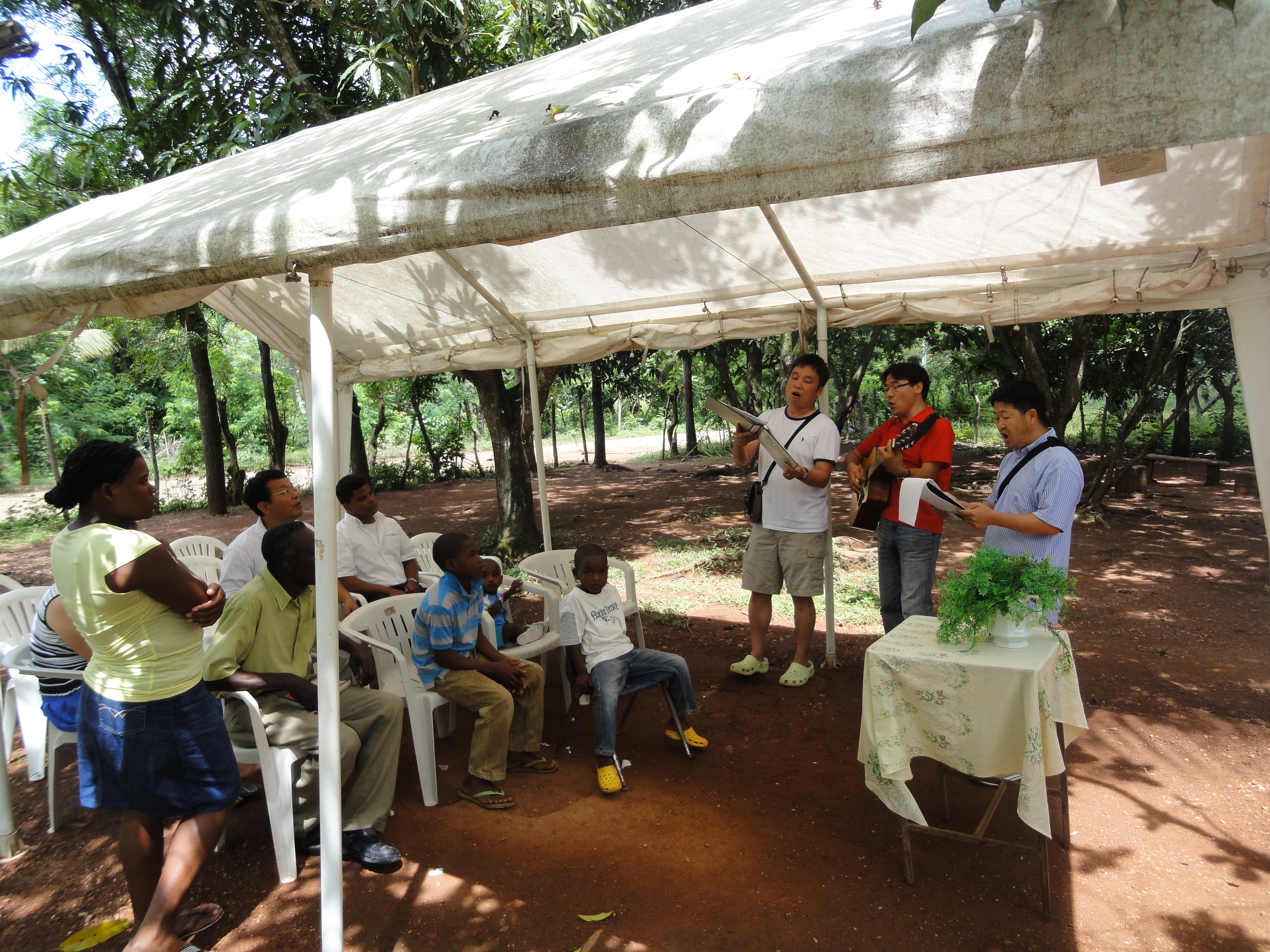 2010년 단기선교시 세웠던 천막교회에서 함께 예배합니다